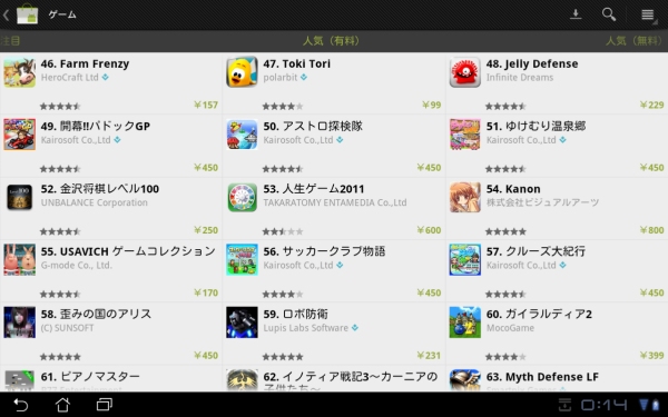 とりあえずゲームコーナーを覗いてみたんだけど、有料無料それぞれ500タイトルほど存在してた。