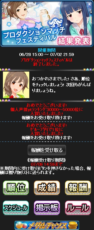 個人の獲得ポイントはそんなに高くないけど、グループ上位報酬はしっかりゲット出来た。